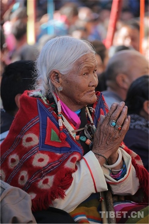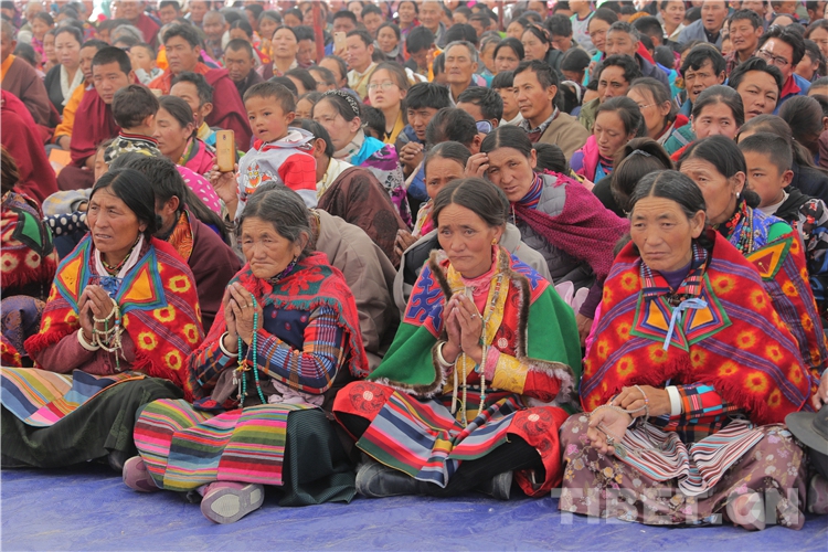 圖為接受長(zhǎng)壽灌頂?shù)纳仔沤倘罕?攝影:王淑