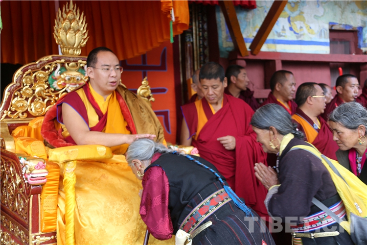 圖為十一世班禪在帕巴寺為僧人摸頂賜福 攝影:王淑