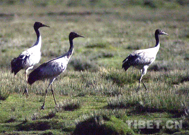 圖為生活在色林錯(cuò)國(guó)家級(jí)自然保護(hù)區(qū)的國(guó)家一類保護(hù)動(dòng)物、被稱為“鳥類熊貓”的黑頸鶴(唐召明2001年攝)