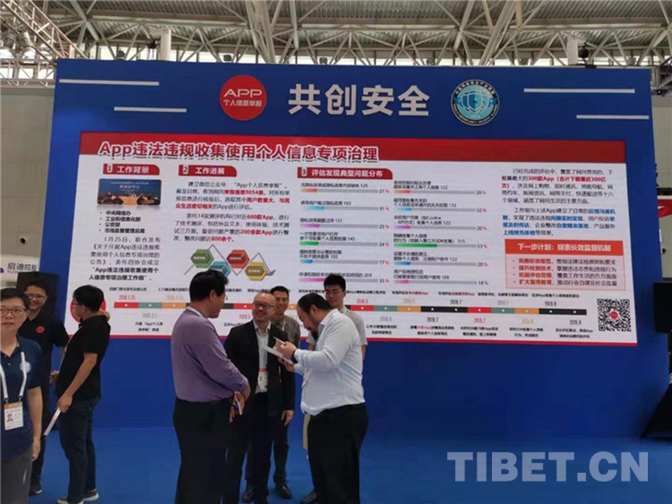 圖為2019年網(wǎng)絡(luò)安全博覽會(huì)上App個(gè)人信息保護(hù)展臺(tái)“共創(chuàng)安全”展板
