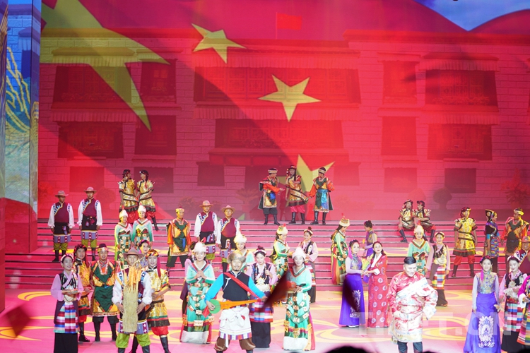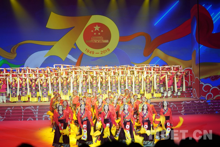 中國(guó)西藏網(wǎng)訊 歡歌起舞迎盛世,為表達(dá)西藏各族人民群眾對(duì)共產(chǎn)黨的無(wú)限熱愛(ài)和對(duì)祖國(guó)母親的深深祝福,9月28日晚,由西藏自治區(qū)黨委宣傳部、西藏自治區(qū)文化廳主辦、西藏自治區(qū)歌舞團(tuán)承辦的西藏自治區(qū)慶祝中華人民共和國(guó)成立70周年文藝晚會(huì)在藏戲藝術(shù)中心舉行。