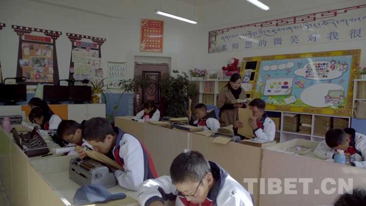 圖為拉薩市特殊教育學校學生正在學習