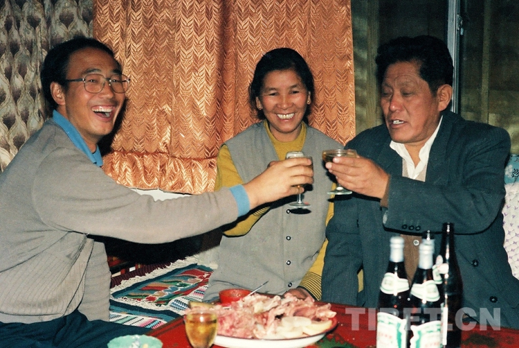 圖為唐召明在時(shí)任西藏自治區(qū)人大常委會(huì)副主任洛桑丹珍家中做客(唐召明1998年攝)