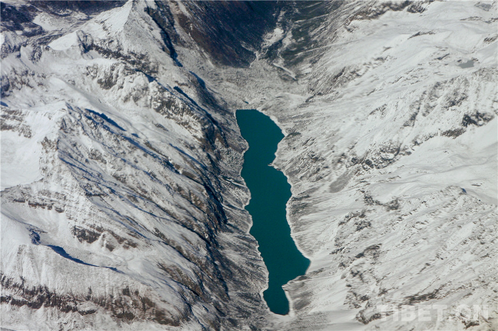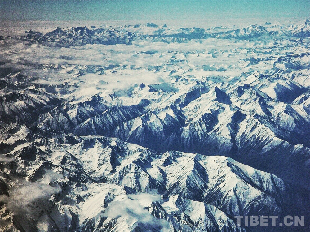 圖為俯瞰雪中的青藏高原,地貌是如此的奇特