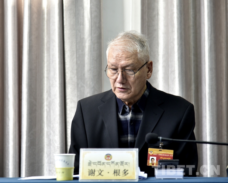 圖為2020年1月8日,謝文?根多參加西藏自治區(qū)政協(xié)十一屆三次會(huì)議民族界小組討論 攝影:王媛媛