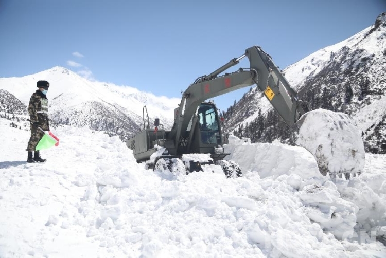 為盡快恢復(fù)通行,安全員時(shí)刻關(guān)注山體情況,確保一旦發(fā)生次生雪崩災(zāi)害能夠及時(shí)傳達(dá)撤退命令。操駕員駕駛救援機(jī)械相互協(xié)調(diào)作業(yè),快速清理路基塌方體。官兵們還給滯留群眾發(fā)放了食物。