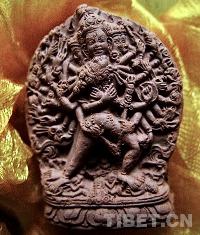 趕緊請(qǐng)匠人找來模具,一看,如此高超的工藝,只能是來自尼泊爾,而且是有一定年頭的上乘之作,一問,果然是他家的老人傳下來的。因?yàn)檎?qǐng)大威德金剛擦擦的人很少,所以模具很少使用,幾乎沒有磨損。這雙身大威德金剛是“悲智合一”的象征,也正吻合了我寫這本書的深意。于是,我訂下了12000個(gè)。