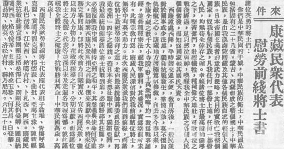 圖為《新華日報(bào)》載“康藏民眾代表慰勞前線將士書” 圖片由喜饒尼瑪提供