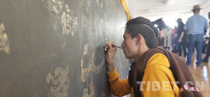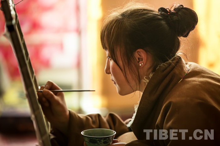 圖為進行唐卡創(chuàng)作的學員攝影:戚宇