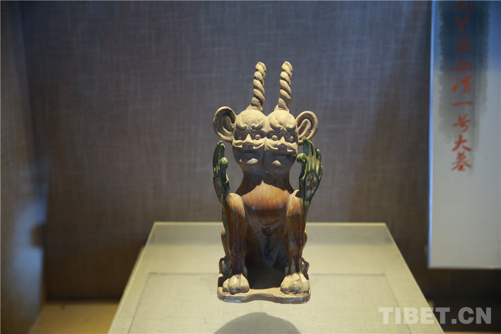 圖為海西州博物館內(nèi)的唐代三彩鎮(zhèn)墓獸 攝影:楊月云