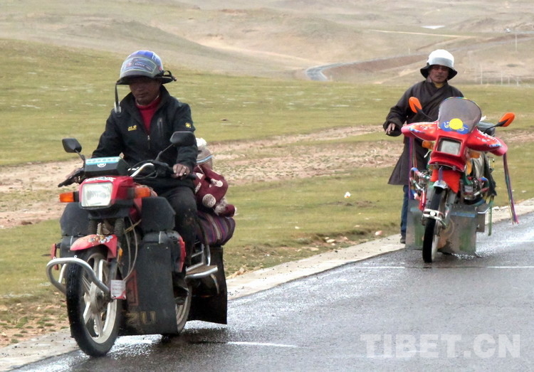 這是兩位外出牧民在騎摩托車出行(唐召明2009年9月19日攝)