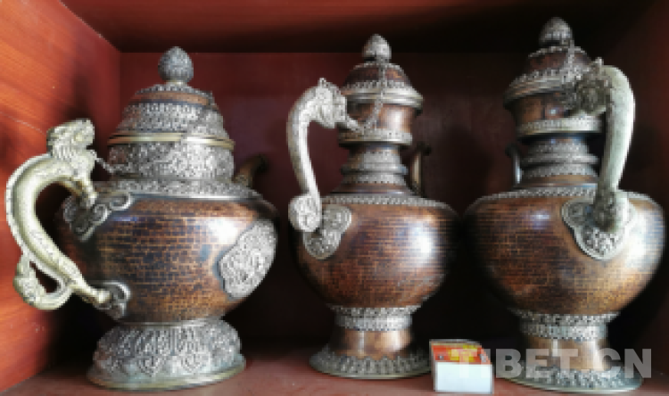 圖為西藏自治區(qū)阿里普蘭縣邊貿(mào)市場中精美的茶壺 攝影:趙國棟