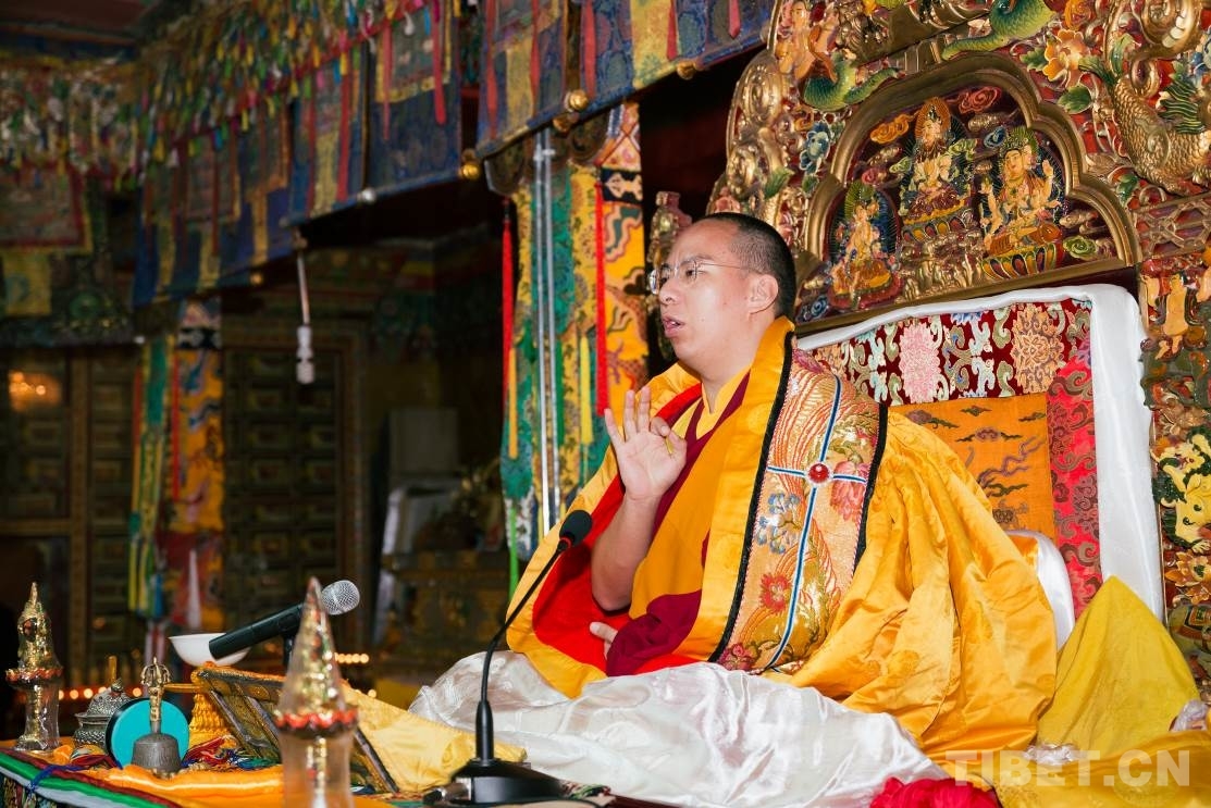 十一世班禪在達孜寺杜康殿為僧眾傳授《隨許皈依經》和《菩提道矩論》 攝影:鄭朔