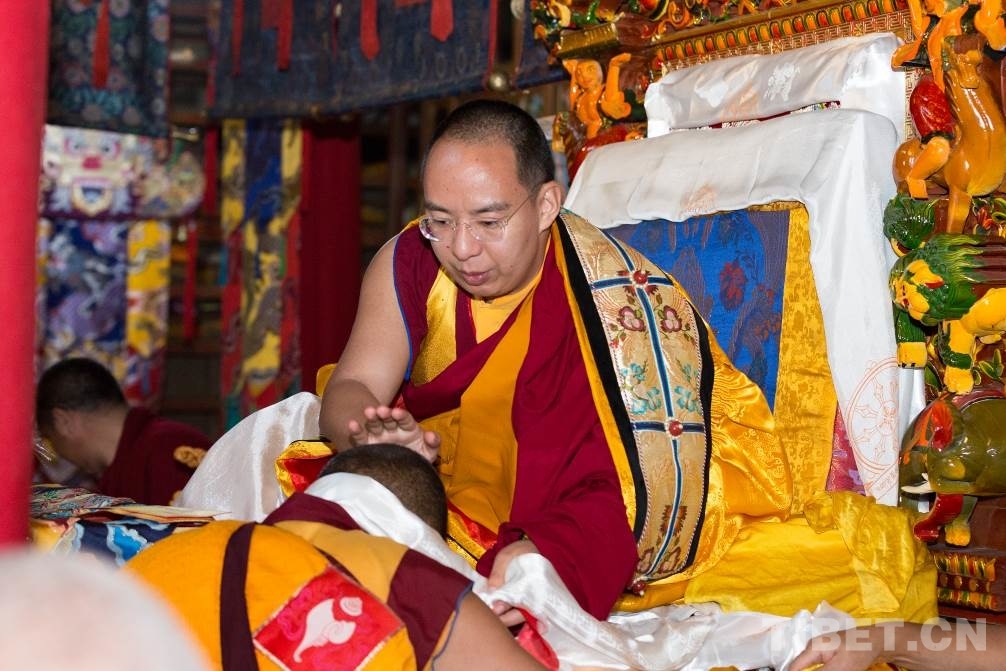 十一世班禪為達姆寺僧人摸頂 攝影:鄭朔