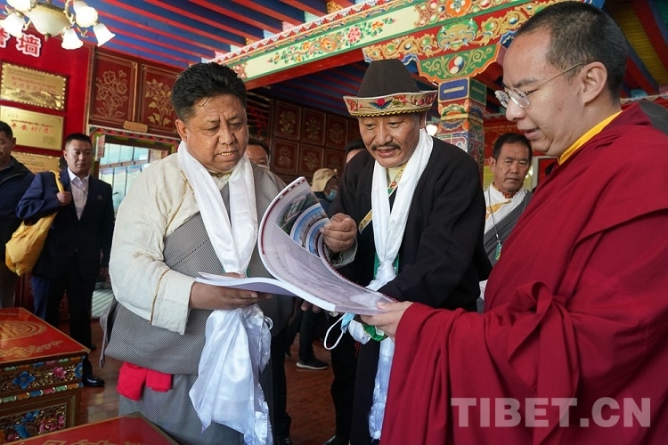 圖為十一世班禪在翻看巴吉村規(guī)劃書 攝影:王淑