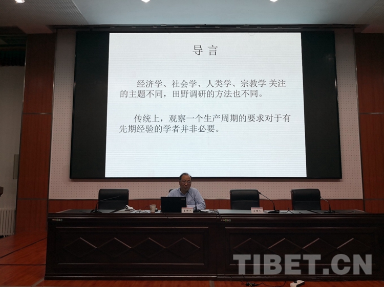 圖為中國藏學研究中心社會經濟研究所所長、研究員扎洛授課