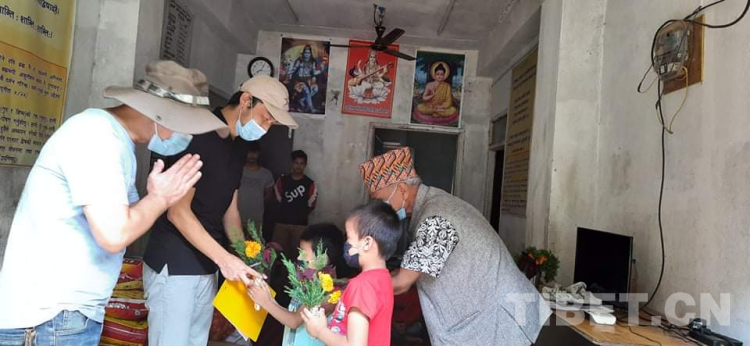 Aama Ko Maya孤兒院小朋友們向中國西藏自治區(qū)農(nóng)牧科學(xué)院援尼泊爾北部山區(qū)農(nóng)業(yè)項(xiàng)目組專家獻(xiàn)花以表示感謝