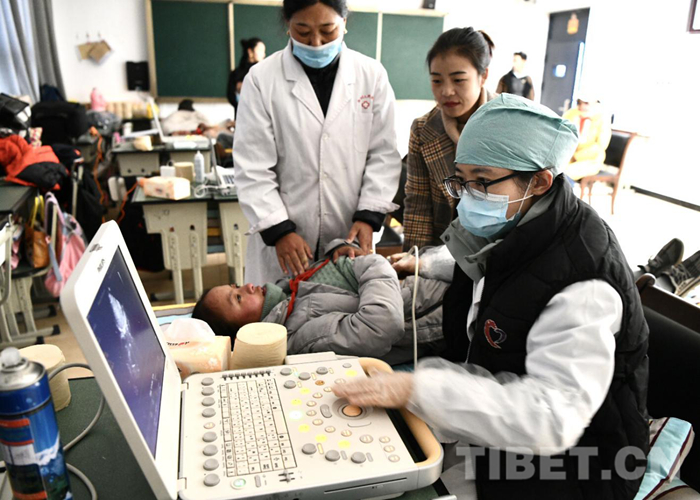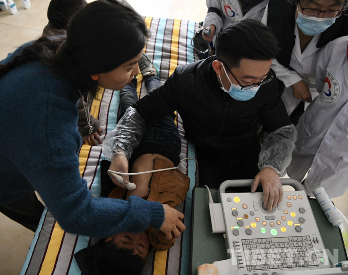 醫(yī)療隊和志愿者們不顧舟車勞頓和高原反應的不適,認真地對每一位前來篩查的小朋友進行詳細的詢問和認真的檢查。對于有疑似癥狀的患者則現(xiàn)場利用從北京帶來的先進設備進行彩超診斷,并耐心和每一位患者家屬進行交流和講解,在每個工作細節(jié)上精益求精。