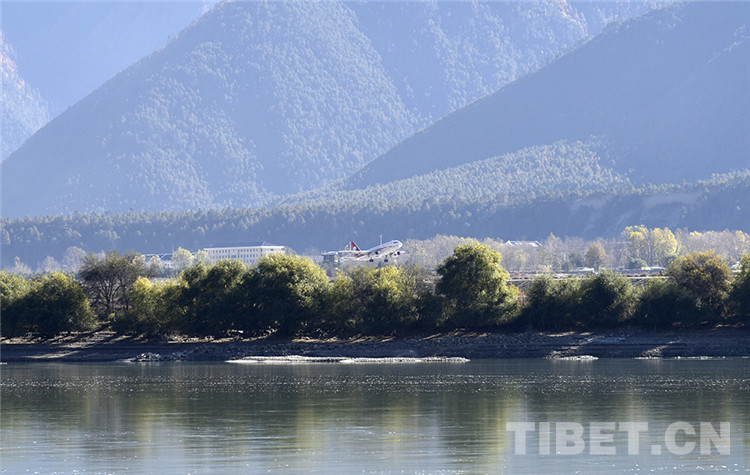 圖為一架飛機從西藏自治區(qū)林芝市米林機場起飛 攝影:王媛媛