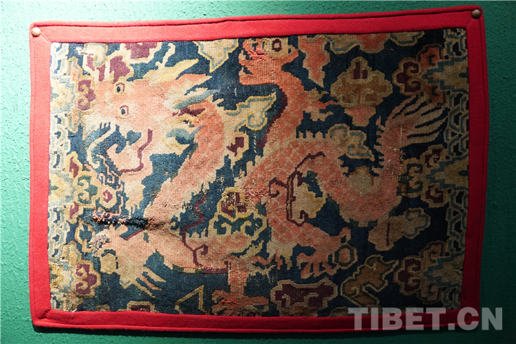 “本次展覽的藏毯,色彩搭配和編織都是技藝一絕,尤其是圖案寓意深遠(yuǎn),最具特色的是龍身鳳尾的龍鳳呈祥花紋非常精美?!苯橛^藝術(shù)中心的創(chuàng)始人徐應(yīng)龍介紹,“上半身為龍身,下半身為鳳尾,體現(xiàn)了多民族的文化交往交流交融。”
