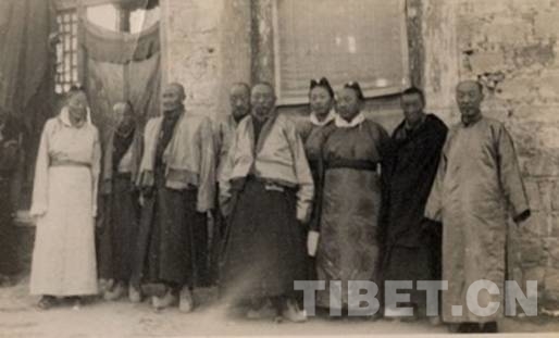 蒙藏委員會(huì)駐藏辦事處代處長(zhǎng)陳錫璋與噶廈官員,右一為陳錫璋(喜饒尼瑪提供)