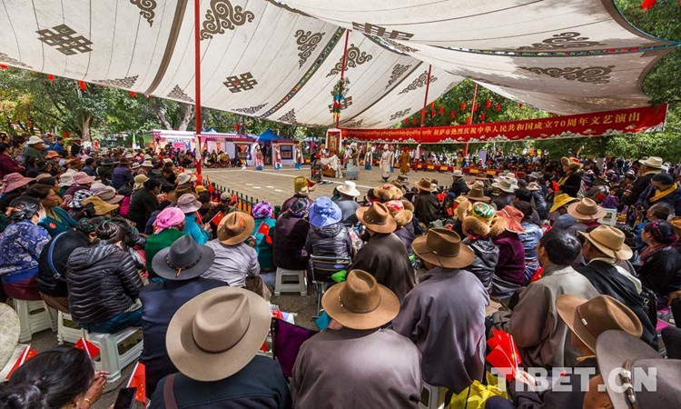 圖為拉薩市民在羅布林卡公園內(nèi)觀看藏戲 攝影:趙耀
