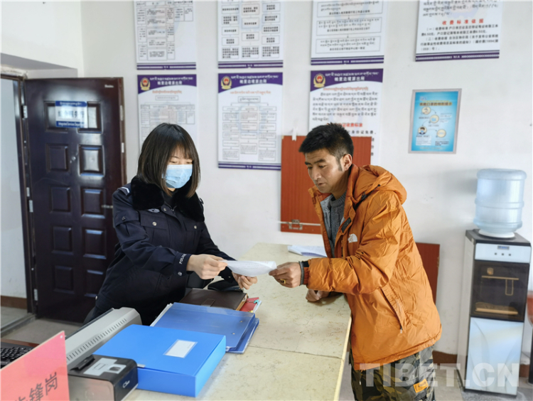 帕里邊境派出所辦證大廳“嚴(yán)格執(zhí)法,熱情服務(wù)”四個(gè)大字在警徽的映襯下,顯得格外的莊重。作為總站辦理戶籍業(yè)務(wù)的第一試點(diǎn)單位,帕里邊境派出所也發(fā)揮了很好的帶頭作用,普布桑珠副所長(zhǎng)帶我們了解了當(dāng)?shù)氐木游瘯?huì),各類轄區(qū)戶籍證明材料以及通行證、戶口證件辦理的流程等,也讓我們對(duì)基層民警的工作有了初步的了解。