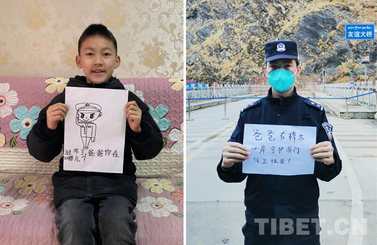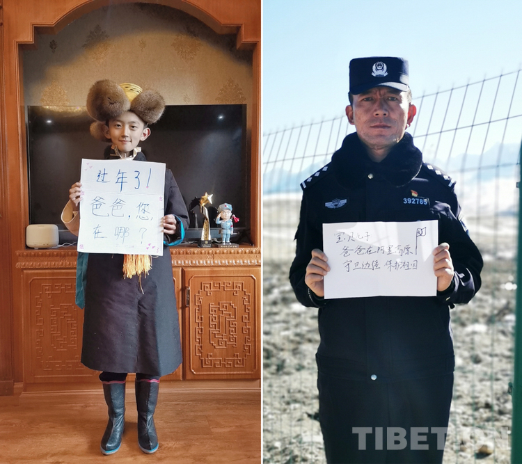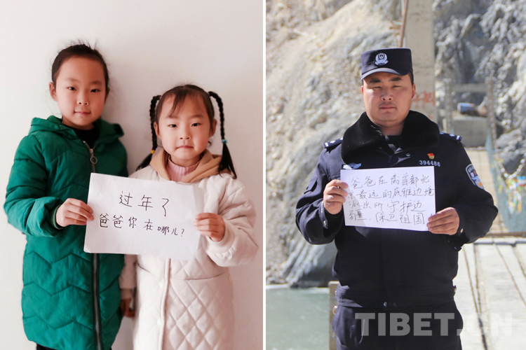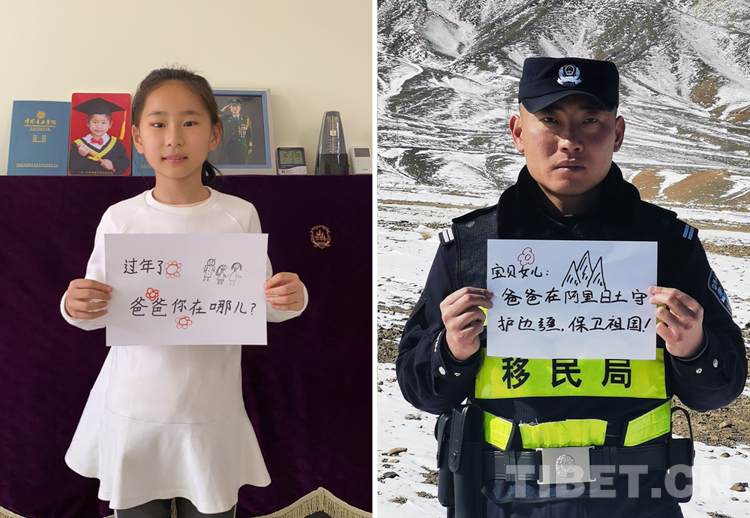 這是一張拼版照片,小女孩名叫旦增諾央,今年8歲,到現(xiàn)在還沒(méi)有和爸爸一起過(guò)過(guò)年。爸爸旦增尼瑪是日喀則邊境管理支隊(duì)亞熱邊境派出所所長(zhǎng),春節(jié)將至,他和戰(zhàn)友們堅(jiān)守在海拔5300多米的中尼邊境一線,他通過(guò)這種方式表達(dá)對(duì)孩子的思念,相信慢慢長(zhǎng)大的孩子一定能夠理解自己。