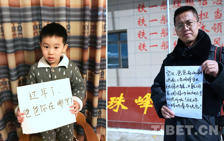 這是一張拼版照片,孩子名叫王躍民,已經(jīng)快六歲了,還沒(méi)和爸爸一起過(guò)過(guò)年。今年他和媽媽、外公外婆在成都過(guò)年。爸爸王卿龍是西藏日喀則邊境管理支隊(duì)薩嘎邊境管理大隊(duì)的教導(dǎo)員,長(zhǎng)年工作在海拔4600以上的邊境一線,今年春節(jié)他主動(dòng)把回家過(guò)年的機(jī)會(huì)讓給了其他戰(zhàn)友,自己又一次選擇堅(jiān)守崗位!