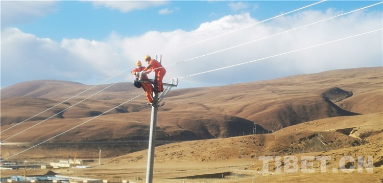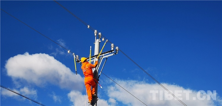 圖為國網理塘供電公司工作人員正在檢查電力線路 攝影:洛澤仁