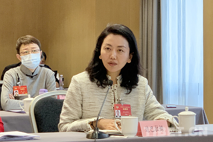 圖為邊巴拉姆做會(huì)議發(fā)言