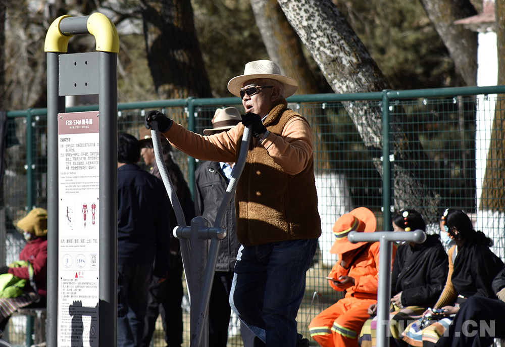 中國(guó)西藏網(wǎng)訊 “一二三四五六七八……”戴著便攜式擴(kuò)音器,一位老大爺照常在宗角祿康公園健身場(chǎng)帶領(lǐng)大家健身鍛煉。