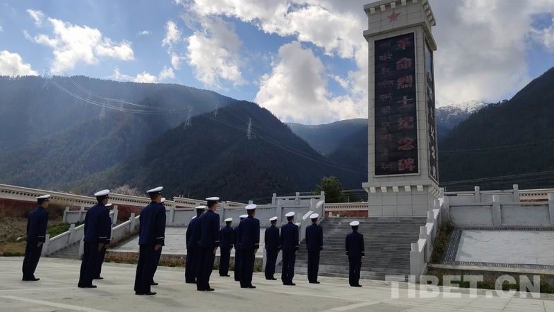 圖為昌都市森林消防支隊(duì)指戰(zhàn)員在昌都市烈士陵園向英雄致敬