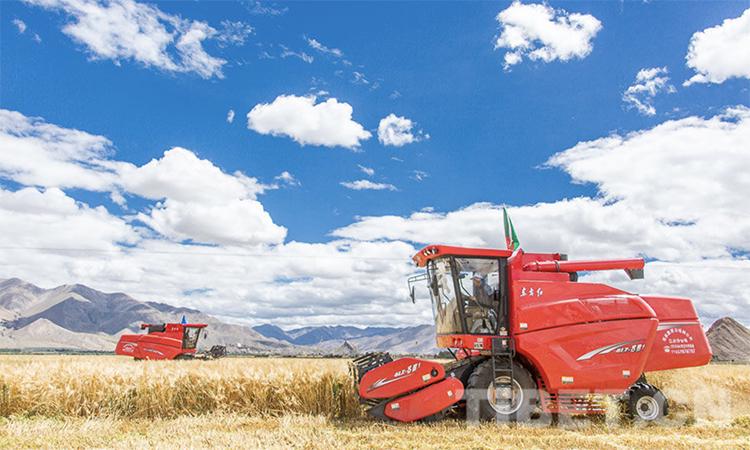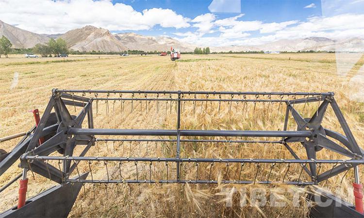 圖為日喀則市江孜縣青稞機(jī)械化收割現(xiàn)場 攝影:趙耀