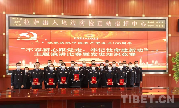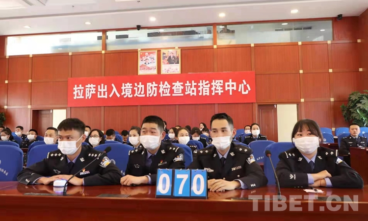 中國西藏網(wǎng)訊 近日,拉薩出入境邊防檢查站舉辦“不忘初心跟黨走、牢記使命建新功”主題演講比賽暨黨史知識競賽。此次知識競賽重在以賽促學(xué)、以學(xué)促行,競賽內(nèi)容緊緊圍繞黨史學(xué)習(xí)教育知識點(diǎn),引導(dǎo)廣大黨員民警親歷了一場生動的思想“洗禮”。圖為知識競賽活動現(xiàn)場。(中國西藏網(wǎng) 通訊員/高揚(yáng) 記者/ 賈華加)