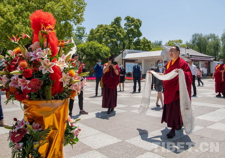 10日上午,班禪專(zhuān)程來(lái)到位于上海市青浦區(qū)練塘鎮(zhèn)的陳云紀(jì)念館,認(rèn)真聽(tīng)取了陳云同志有關(guān)事跡,并向陳云銅像敬獻(xiàn)哈達(dá),追思陳云同志愛(ài)國(guó)憂民、為共產(chǎn)主義事業(yè)鞠躬盡瘁的偉大一生……