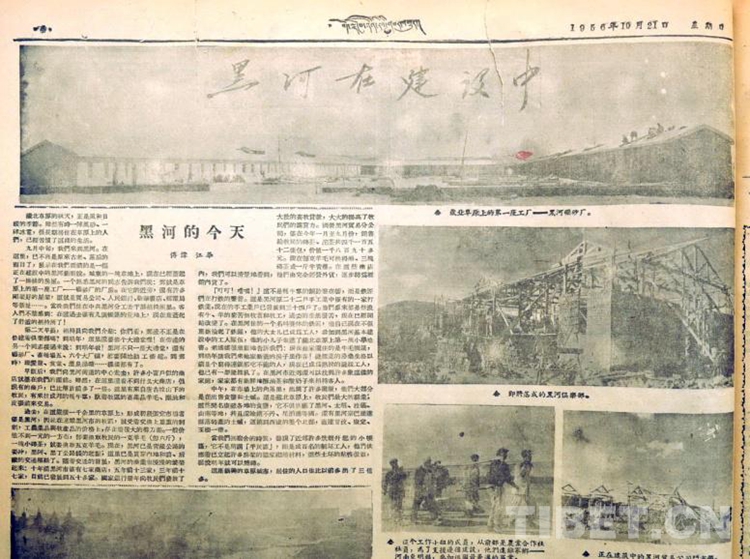 這是1956年10月21日新聞報(bào)道“黑河在建設(shè)中”的《西藏日?qǐng)?bào)》(唐召明翻拍圖片)