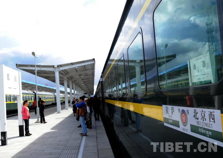 這是拉薩開往北京的T28次京藏列車到達(dá)藏北首府的那曲車站(唐召明2012年8月12日攝)