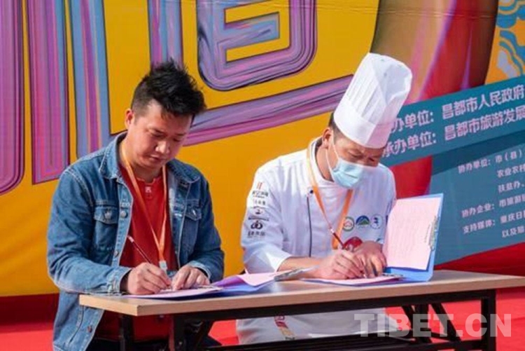 此外,活動現場還進行了非物質文化遺產體驗活動和產品展銷活動,共有32個企業(yè)參加。據悉,截止活動結束,現場累計交易額5萬余元。重慶文旅館同參賽人員進行現場簽約,這對昌都餐飲業(yè)的推廣和發(fā)展具有重要的意義。(中國西藏網 記者/次旦拉姆 圖片由卓卓康巴美食大賽組委會提供)
