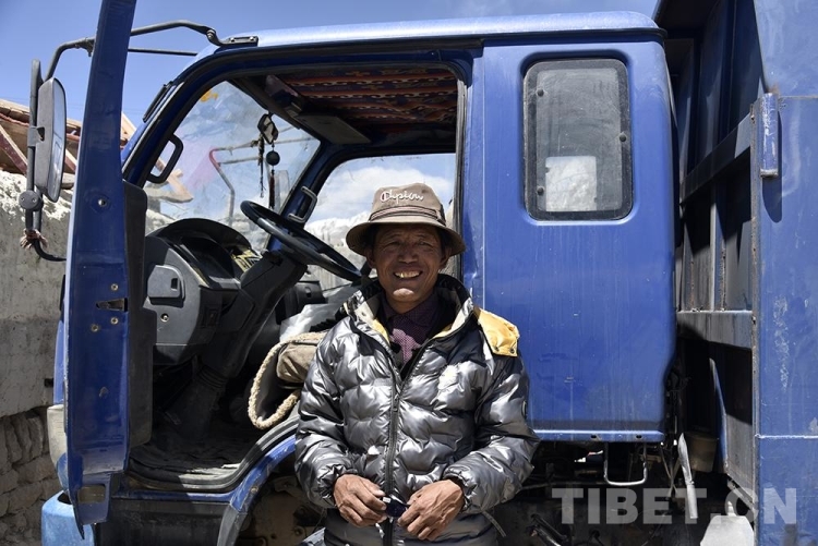 圖為2021年4月,阿里地區(qū)改則縣麻米鄉(xiāng)茶措村村民扎布站在新購(gòu)買的貨車前 攝影:王媛媛