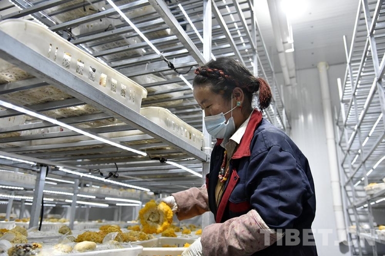 圖為2020年8月拍攝的日喀則市珠峰一見(jiàn)則喜生物科技示范園區(qū)出菇棚里工人正在采摘金耳 攝影:王媛媛