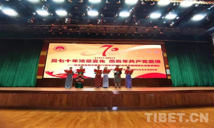 5月23日是西藏和平解放70 周年紀(jì)念日。23日上午,由西藏自治區(qū)拉薩市蔡公堂街道和西藏社會(huì)主義學(xué)院共同舉辦的紀(jì)念西藏和平解放70周年頌祖國(guó)、念黨恩朗誦暨文藝表演活動(dòng)舉行?,F(xiàn)場(chǎng)鮮花嬌艷,燈光炫目,旋律悠揚(yáng),歌聲嘹亮。