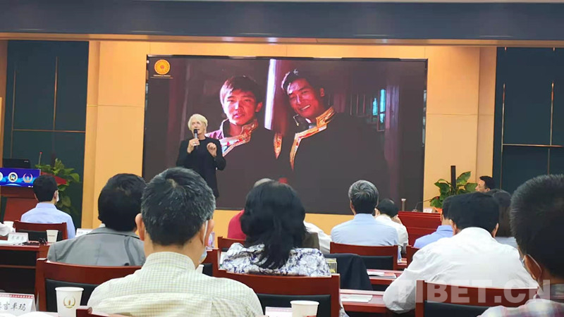 圖為美國(guó)作家、香巴拉工作室創(chuàng)始人龍安志在紀(jì)念西藏和平解放70周年學(xué)術(shù)研討會(huì)上進(jìn)行題為《西藏文化可持續(xù)發(fā)展》的發(fā)言 攝影:劉莉