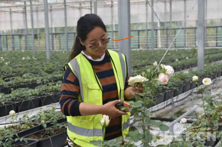 圖為在花棚就業(yè)的大學(xué)生正在修剪玫瑰 攝影:拉姆