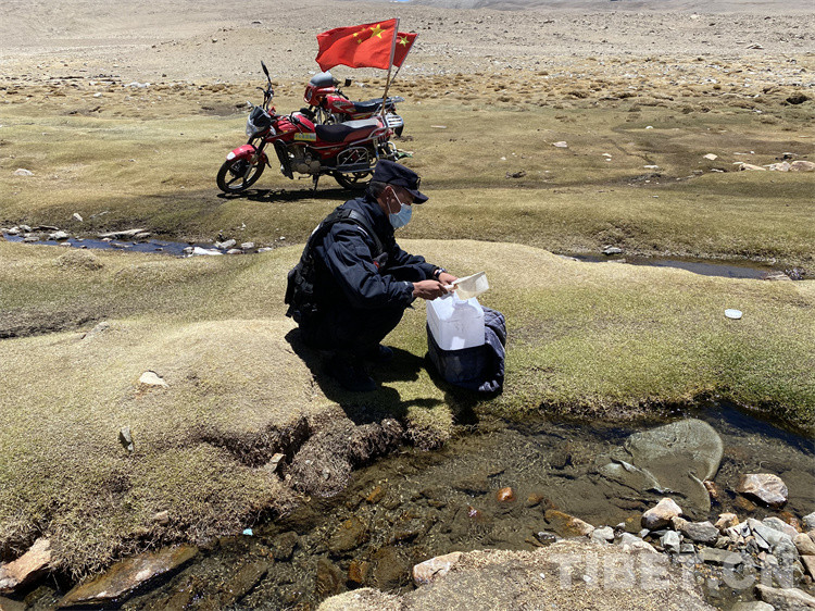 圖為邊巴次仁在離執(zhí)勤點(diǎn)5公里左右的山上打生活用水