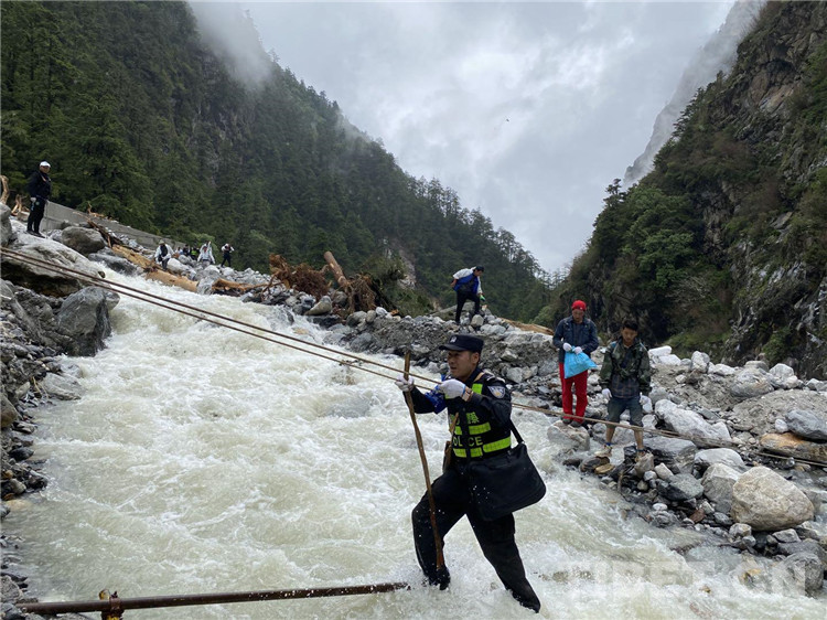 在經(jīng)過勘察后,派出所民警發(fā)現(xiàn)左布德至國防公路四號橋位置發(fā)生大面積山體滑坡10余處,救援隊研判搜救風(fēng)險后,通過搭橋、吊繩、分批護送等方式打通了長達10公里的“生命通道”。