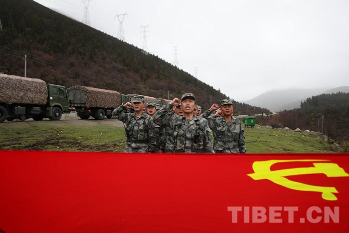 中國西藏網(wǎng)訊 近日,西藏軍區(qū)某運輸旅執(zhí)行川藏線方向的運輸任務車隊,到達迫龍?zhí)祀U時,開展了“重溫入黨誓詞、爭當保障尖兵”活動?!拔抑驹讣尤胫袊伯a(chǎn)黨,我宣誓……”鏗鏘有力的誓言在崇山峻嶺中回蕩。