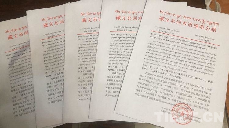 據(jù)介紹,在1987年西藏自治區(qū)藏語文工作委員會辦公室成立初期,成立了西藏自治區(qū)辭書審定領(lǐng)導(dǎo)小組,負責(zé)編纂審定漢藏對照行業(yè)詞典;1995年在全國藏語術(shù)語標準化委員會的領(lǐng)導(dǎo)下,西藏自治區(qū)藏語委辦和編譯局組織本單位專家和西藏日報、廣電、教材編譯等部門專家,定期不定期地收集審定出現(xiàn)頻率較高的新詞術(shù)語,并已活頁形式發(fā)布。