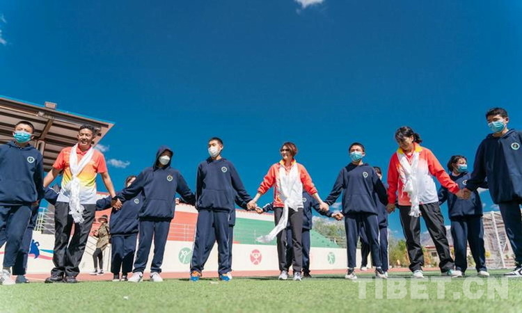 在拉薩阿里高中,一行人觀摩了西藏傳統(tǒng)體育項目吉韌、押加并與學生們同跳特色課間操。隨后,高敏、西洛卓瑪、德慶歐珠3人與學生們一起互動交流、分享人生感悟。