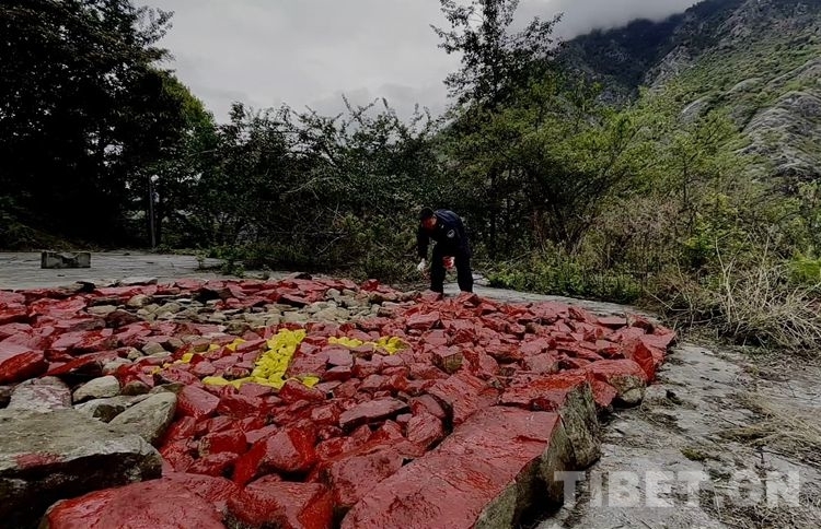 中國西藏網(wǎng)訊 “這些石頭都是地震過后山體滑坡遺留下來的,我們現(xiàn)在把它搬過來砌成黨旗,也算是充分發(fā)揮它的作用了。”該站入黨積極分子徐新新一邊搬著石頭一邊對(duì)記者說道。